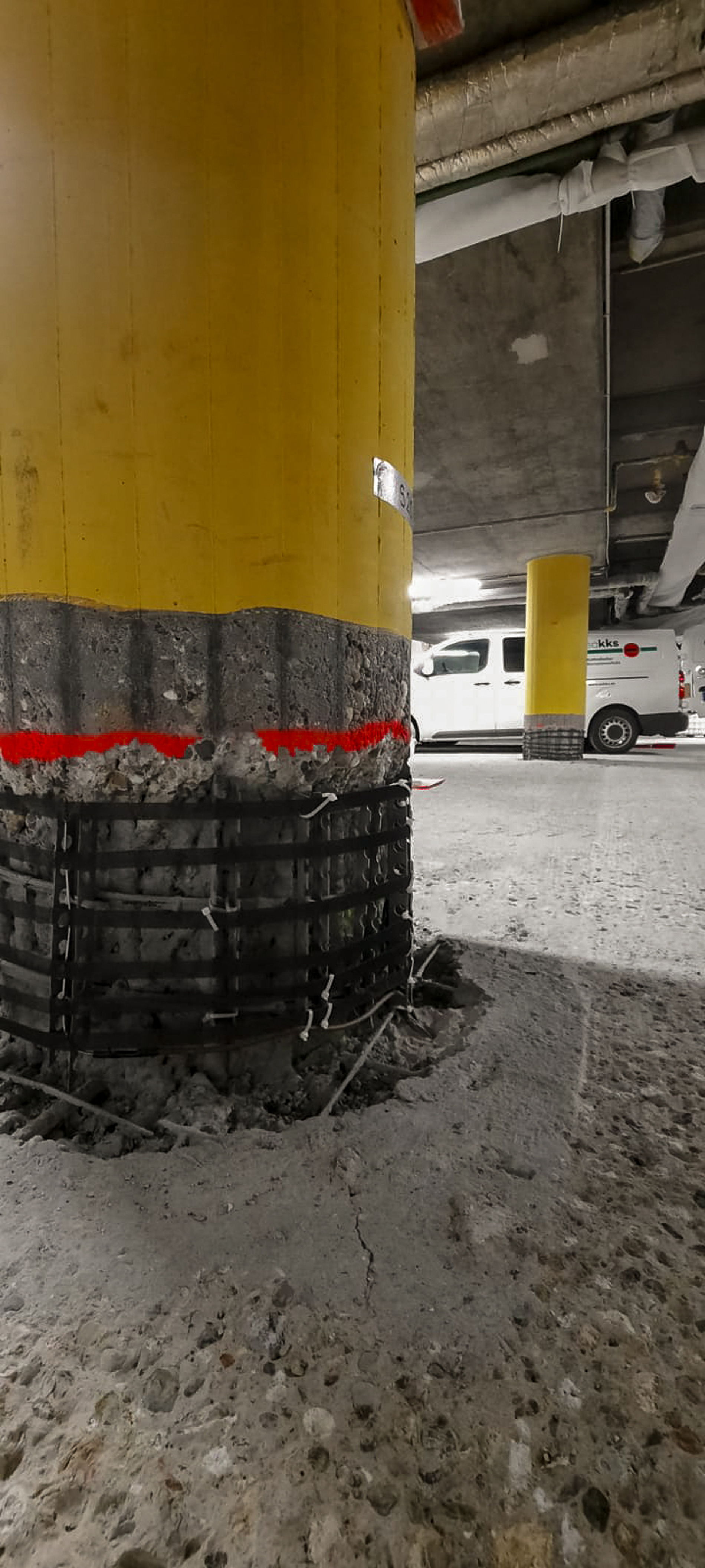 Anzahl der Schutzbereiche: 3 Schutzbereiche (Stützensockel 1UG, Stützensockel 2UG, Trennfuge – Überfahrt 1UG und 2 UG)